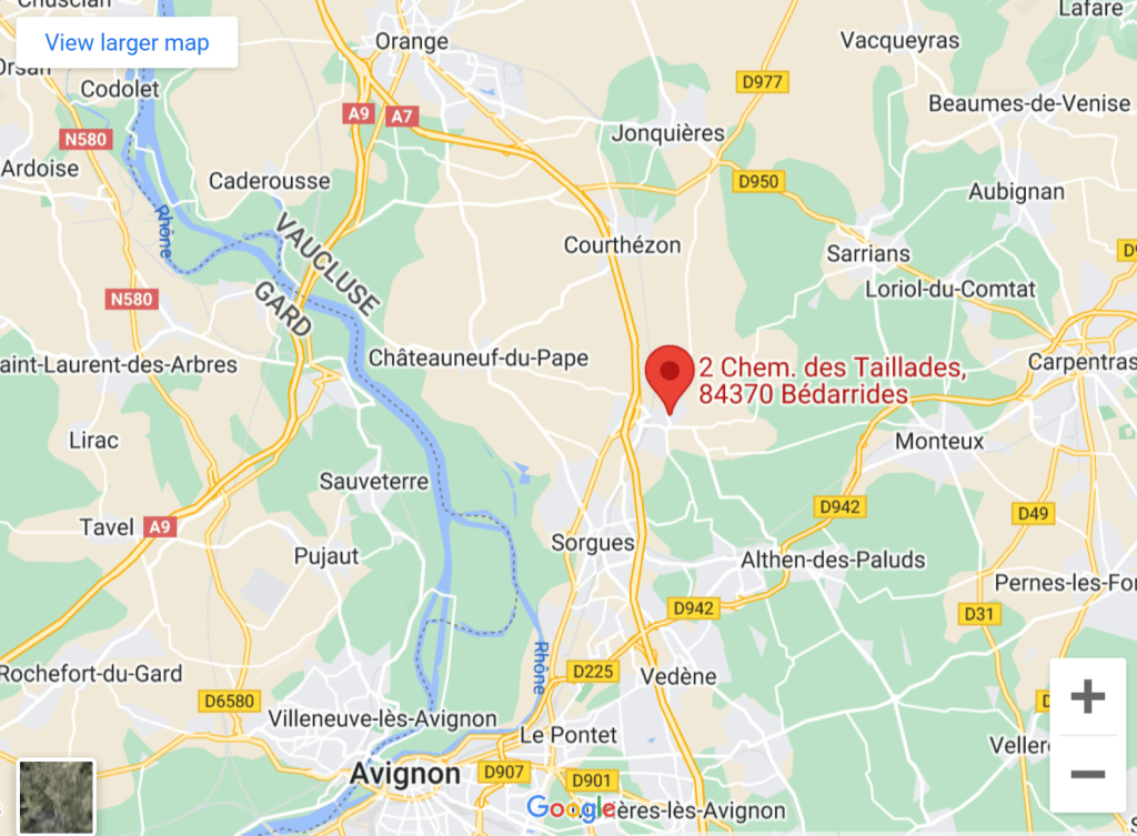 Adresse :2 Chemin des TailladesBédarrides 84370, FranceSur RDV uniquement